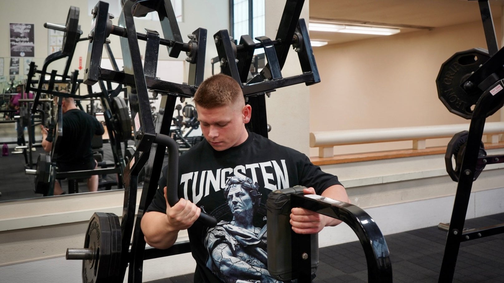 Thumbnail Cover- Model has 16” arms and 46” chest in diameter and is wearing an L in size.